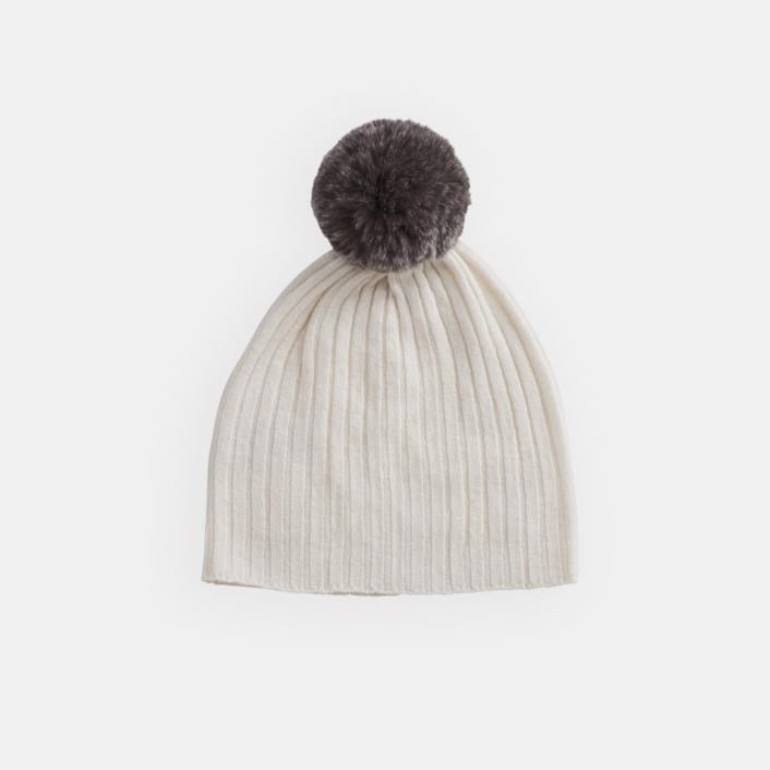 BELLE ENFANT Pompom Hat, Rabbit Fur Trim