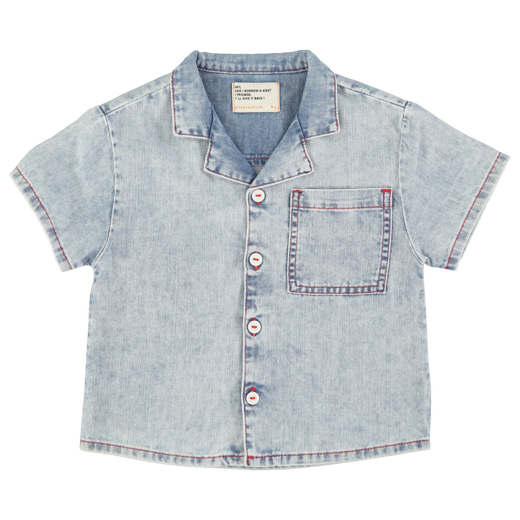 Hawaiian Shirt With Loose Fit And Open Collar. Front Patch Pocket. White Front Buttons. Detailed With Leather Logo Label On The Neck.