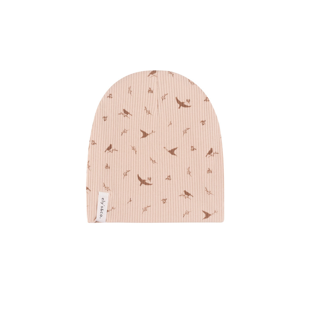 Ely’s & Co Ribbed Cotton - Bird - Brown/Pink - Beanie
