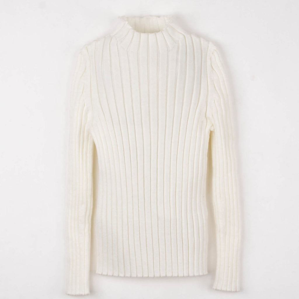 Popelin Off-White Funnel Collar Ribbed Jersey