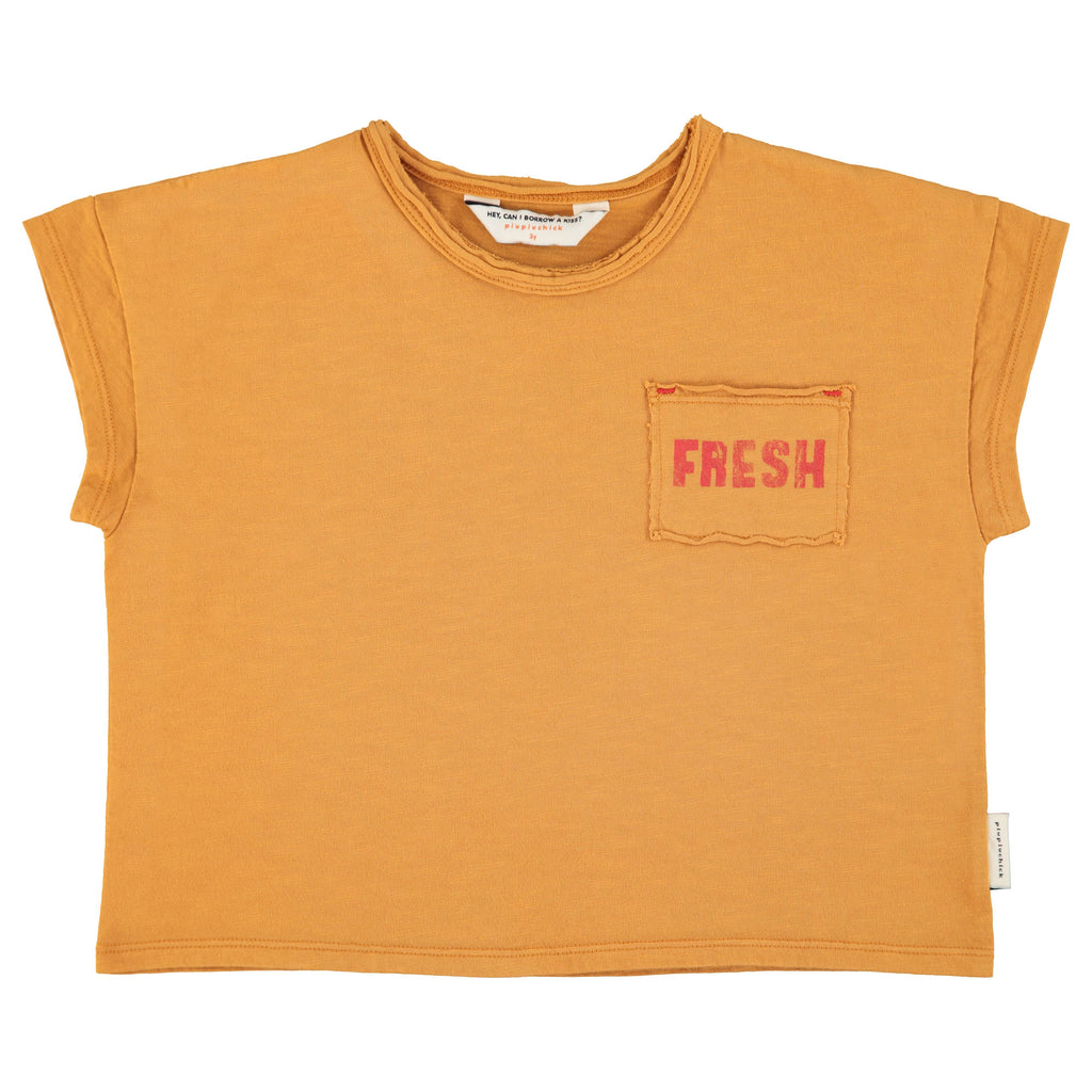 T´Shirt In Jersey Flamé With Chest Pocket In Raw Edge. Detailed With Print On The Chest And Back Print. Wood Buttons On Shoulder For Baby Sizes.