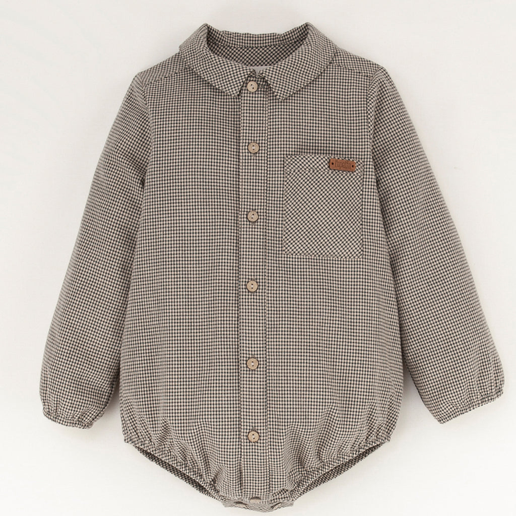 Popelin Black Gingham Shirt Romper Suit