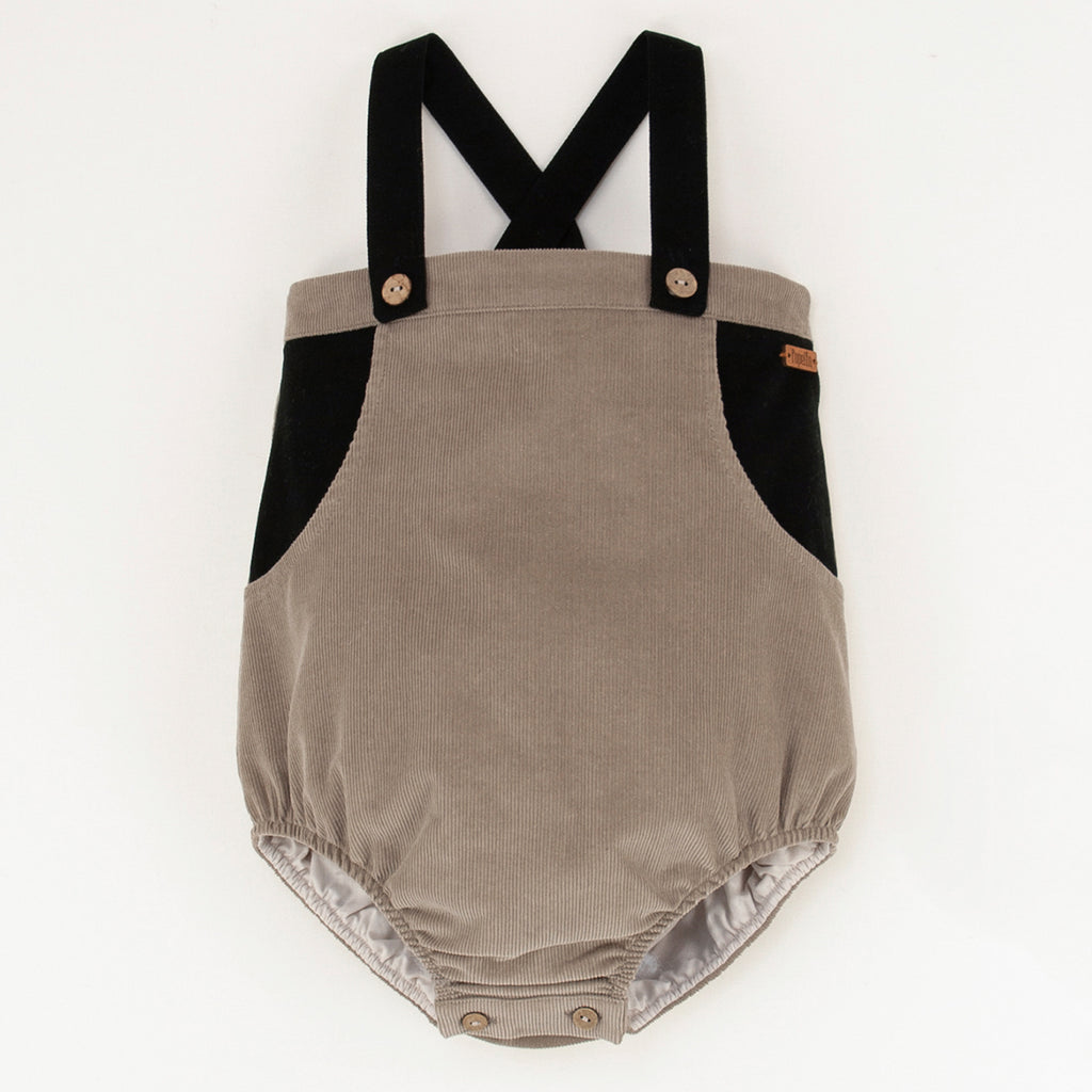Popelin Taupe Romper Suit With Bib And Straps