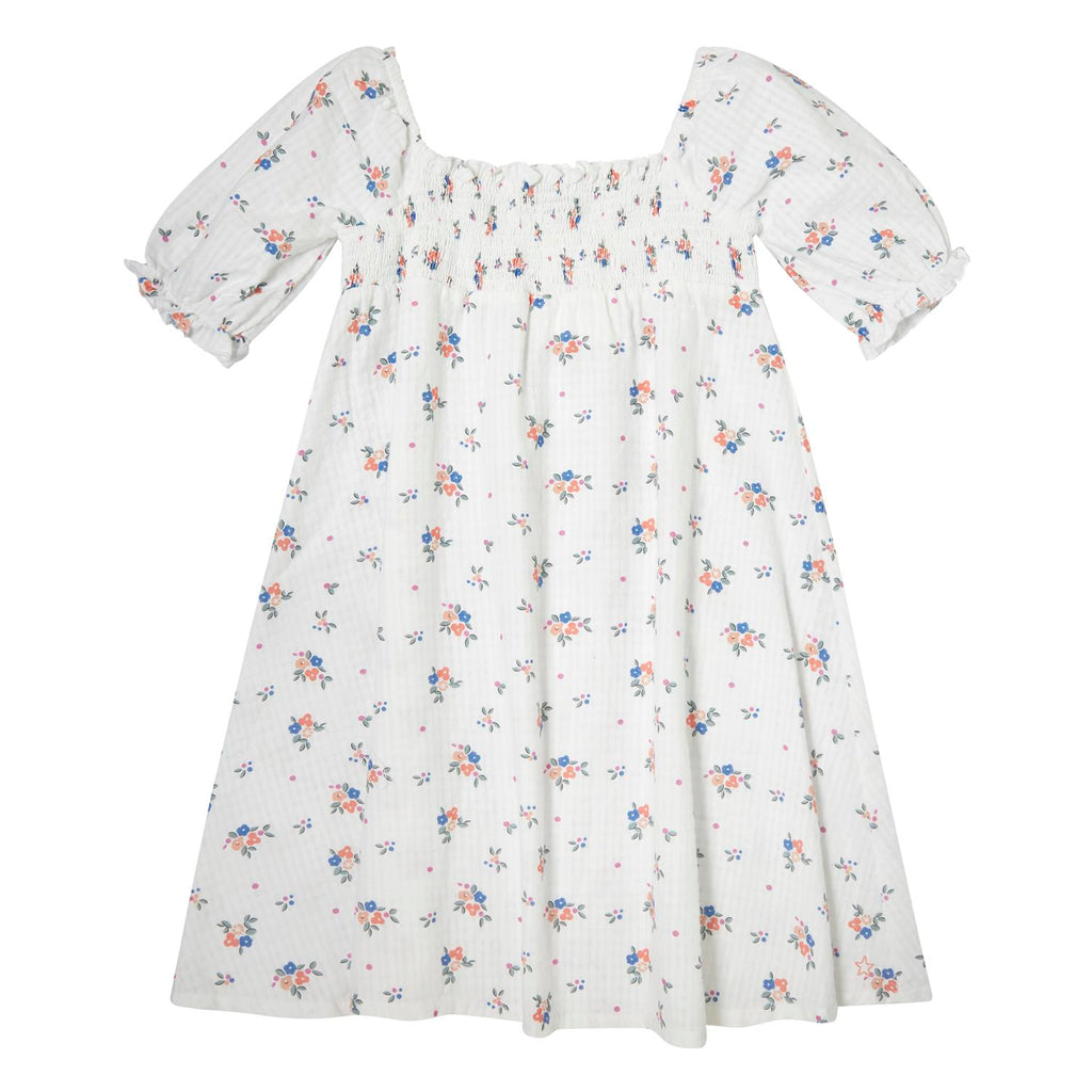 Tocoto Vintage Balloon Sleeve Flowers Midi Dress Off White